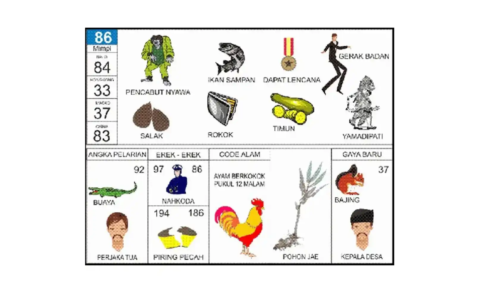 3. Apa hubungan angka 86 dengan kode alam ayam berkokok pukul 12 malam?